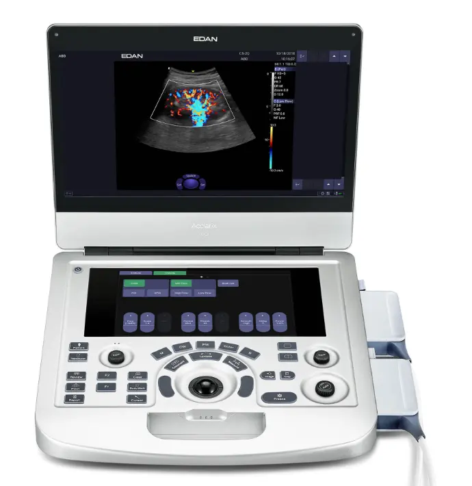 Su diseño compacto tipo laptop y su peso liviano lo convierten en un ecógrafo ideal para clínicas móviles o atención domiciliaria. La portabilidad del Edan AX3 permite ofrecer estudios médicos donde se necesiten, sin comprometer la calidad del diagnóstico.