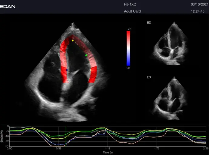 TAI es una tecnología exclusiva y patentada desarrollada por Edan. Esta innovadora función interactúa de forma continua y dinámica con los ecos de retorno, adaptando la imagen automáticamente según las características del tejido que se está evaluando. Sin necesidad de intervención del usuario, el sistema ajusta múltiples parámetros en tiempo real, optimizando el rendimiento en cada modo de imagen. TAI está disponible en modo B, Doppler color y Doppler espectral. Entre sus principales beneficios se incluyen: